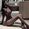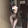 Netzbody mit Leopardenmuster, mit Netzstrümpfen und Handschuhen