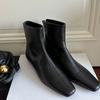 Mode Lederstiefel Damen Herbst Winter Schwarz Stiefeletten Neu Samt Reißverschluss hinten Eckige Spitze Schmale Schuhe Damen Niedrig Absatz Kurze Stiefel