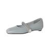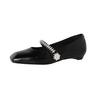 Mode Damen neue Leder Rindsleder Frühling und Herbst eckige Zehenpartie Diamant Perle Gürtelschnalle niedriger Absatz Mary Janes Arbeitsschuhe