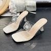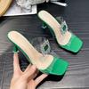 Mode Transparente Hausschuhe Schuhe Frau 2025 Dünne Absätze Pantoffeln Glitzer Pantoletten Absatz Mules Mode Neu Jelly Hoch Luxus Kristall