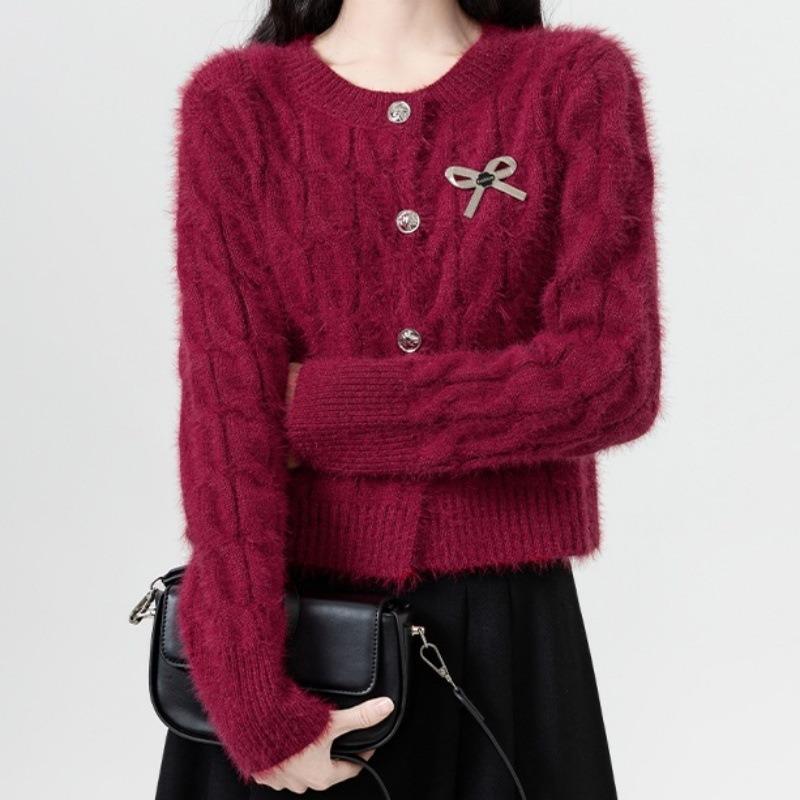 Imitation mink sweater women's autumn top new gentle wind round neck twist women's knitted cardigan jacket