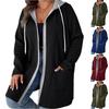 Damen Modische Gestreift Bedruckte Langärmelige Kordelzug Kapuzenjacke mit Reißverschluss und Taschen Langes Lässiges Sweatshirt