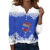 Damen T-Shirt mit Weihnachtsdruck, Knopfleiste, lange Ärmel, für den Alltag, Wochenende, modisch, Basic, V-Ausschnitt, normales Oberteil