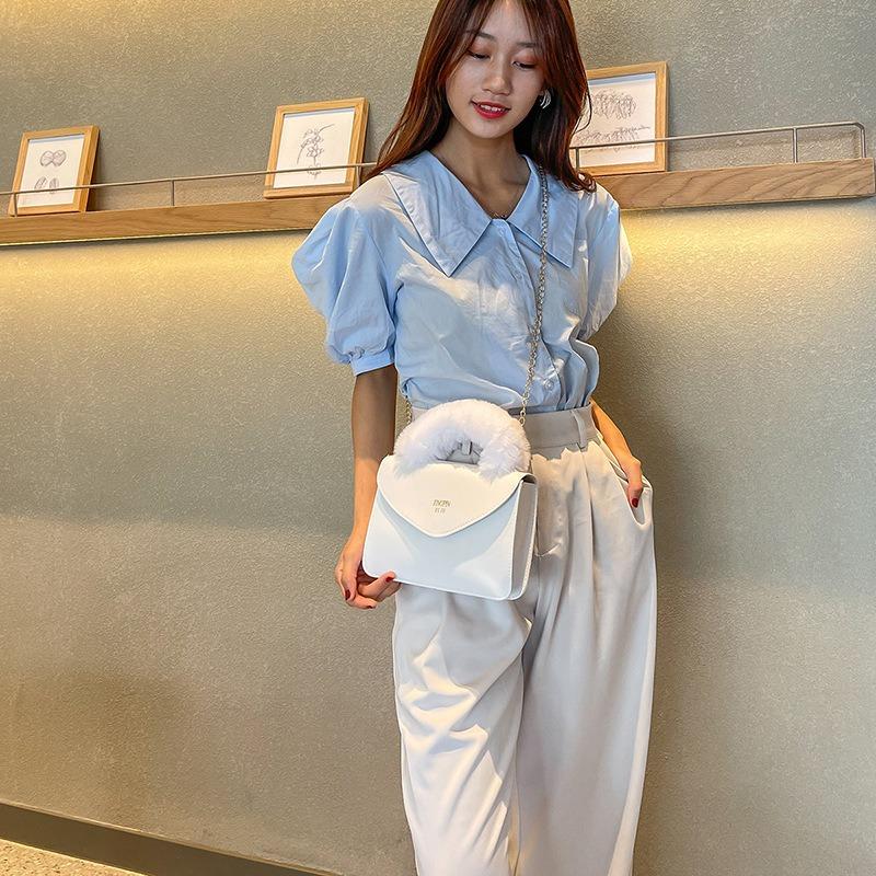 Tasche Damenmode Bedruckt Plüsch Kette Tragbar Magnetverschluss Kleine Quadratische Tasche Vielseitig Ein Schulter Crossbody Kleine Quadratische Tasche
