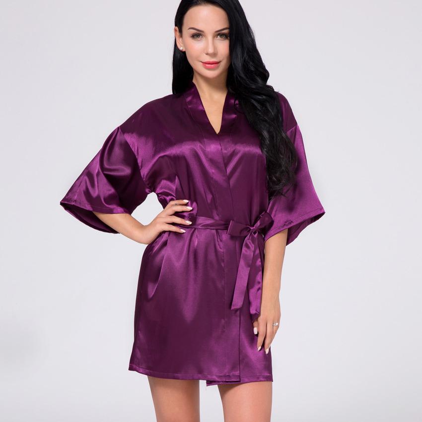 Damen Satin Kimono Nachthemd - Glänzend, Uni, Kurzer Sommer Bademantel