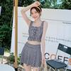 Discover the perfect blend of style and comfort with this Women's Summer Skirted Split Swimsuit. Designed exclusively for women, this swimsuit features a chic plaid pattern that adds a touch of classic elegance. Made from high-quality polyester, it ensures a soft and comfortable fit. The suit is expertly crafted with tummy control features to enhance your natural silhouette, providing a slimming effect that boosts confidence. With a flattering push-up design, this swimsuit highlights your curves while maintaining a playful student style. Whether you're lounging by the pool or enjoying a day at the beach, this sexy yet tasteful swimsuit is your go-to choice for sunny adventures.