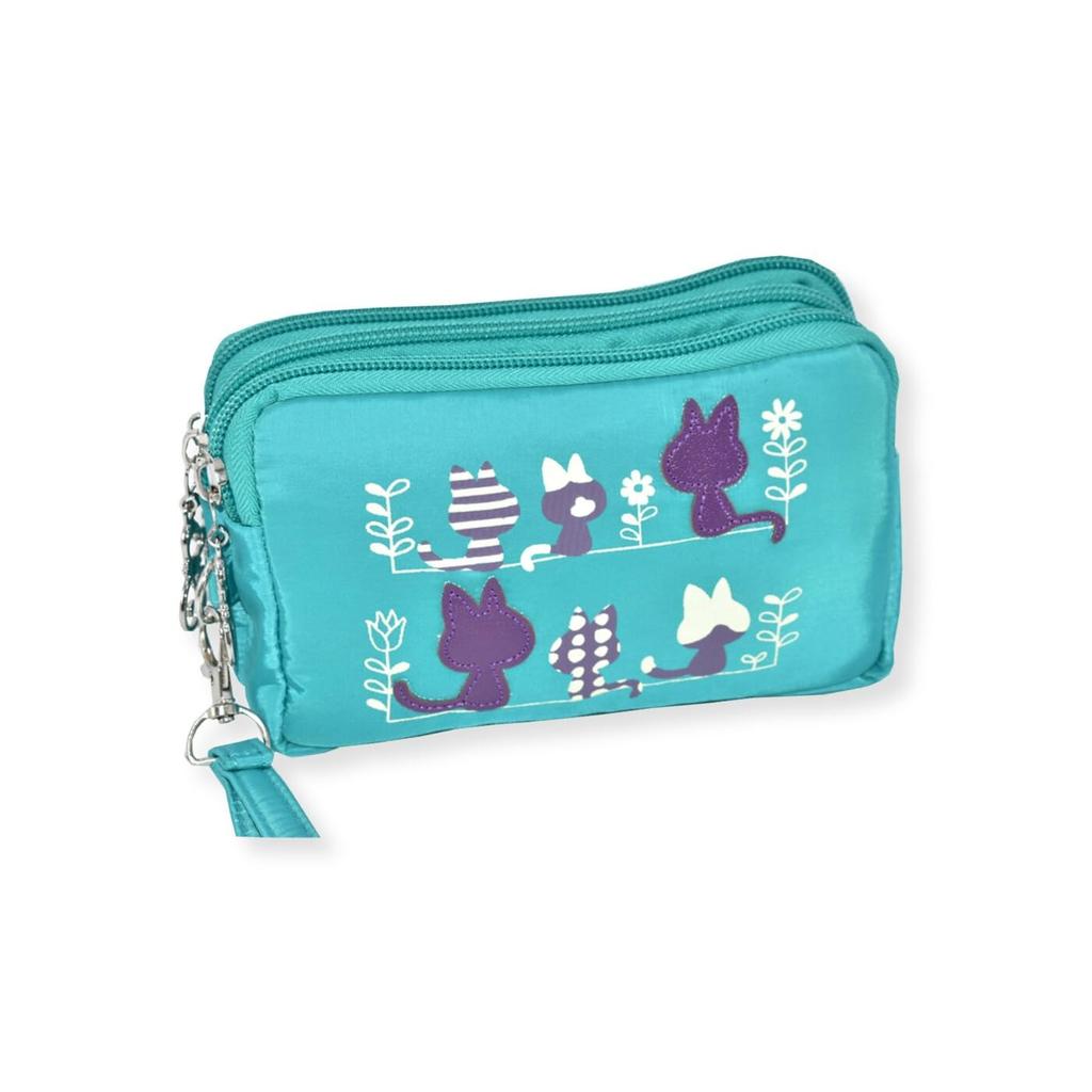 Cute and stylish nylon mini cosmetic pouch with large triple zipper and three Perfect as a gift or travel strap, capacity, closure, pockets. pouch.