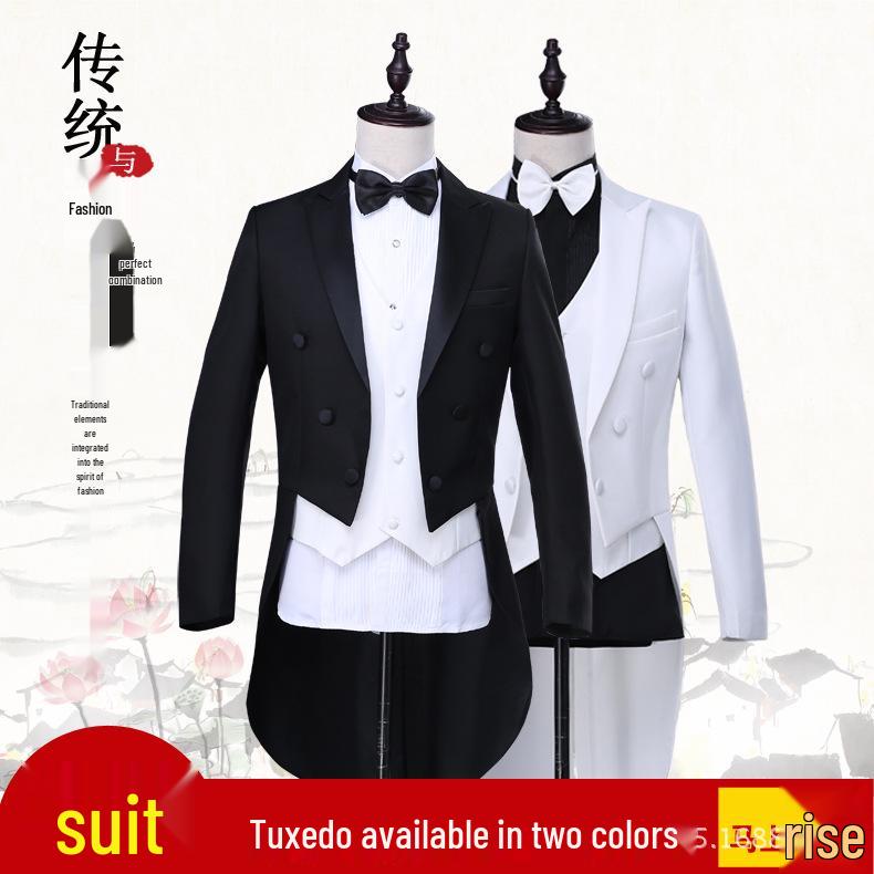 Dieser Smoking ist für diejenigen entworfen, die bei Bühnenauftritten und formellen Veranstaltungen einen eleganten und anspruchsvollen Look suchen.. Gefertigt aus hochwertigem Acetat, bietet es eine stilvolle und bequeme Passform.. Das herausragende Merkmal dieses Smokings ist sein Schwalbenschwanz-Design, das der traditionellen formellen Kleidung eine einzigartige Note verleiht.. Die Jacke ist mit auffälligen „wah-dah-neh“-Pelzdetails verziert, die ihre Eleganz unterstreichen und sie perfekt für diejenigen machen, die einen unvergesslichen Eindruck hinterlassen möchten.