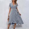 Damenkleider mit V-Ausschnitt, Taille, Blumenmuster und kurzen Ärmeln