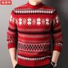 Hengyuanxiang Herren Pullover aus 100% Wolle, Jacquard-Strick, Rundhals