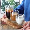 Eiförmiger isolierter doppelwandiger Becher aus Borosilikatglas