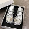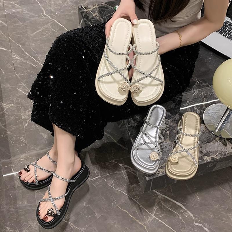 Sandalen Hausschuhe Damen 2025 Sommer neu Außen tragen Kneifüße Fett breiter Satz Zehen Französisch Römisch Strand dicker Boden Keilsandalen