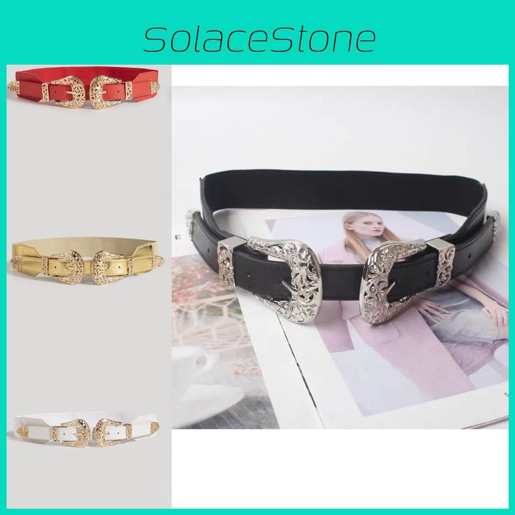 adjustable waist belt, denim waist cincher, vintage buckle belt, hollow design belt, elastic faux leather belt, unisex fashion belt, European style denim accessory, summer winter versatile belt