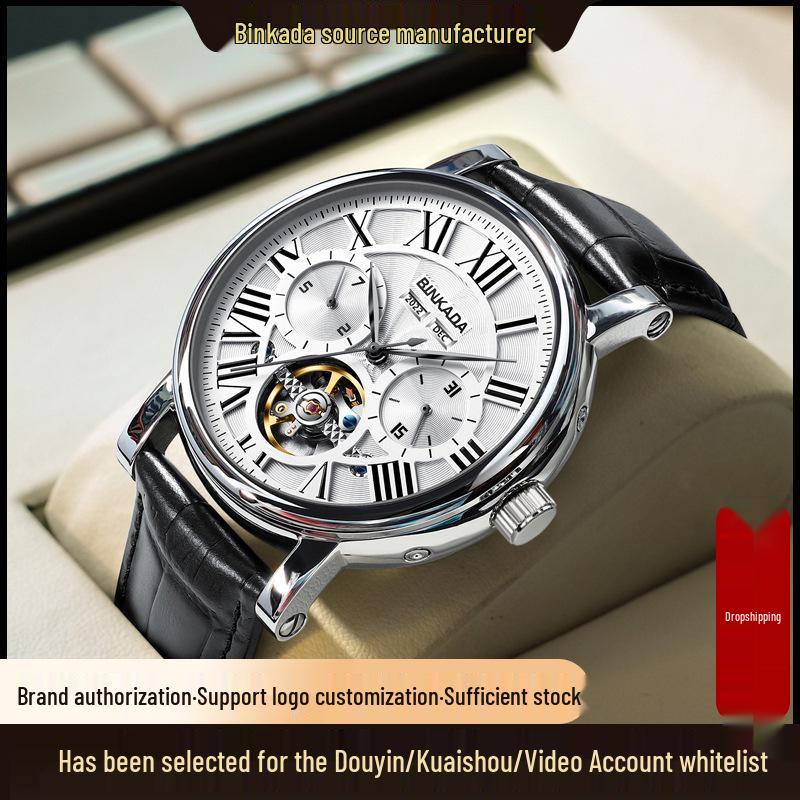 BINKADA Herrenmode Skelett Mechanisch Leuchtend Wasserdicht Uhr