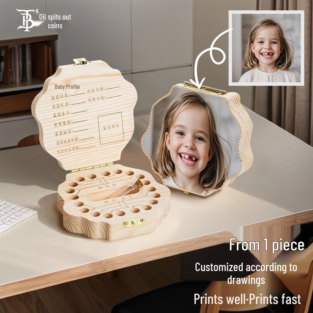 Holz-Erinnerungsbox für Milchzähne und Lanugohaare für Kinder