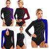 Damen Gymnastik Performance Turnanzug Glitzer Strasssteine Transparentes Mesh Langarm Eiskunstlauf Body