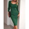 Herbst Winter Quadratkragen Einfarbig Strick Bodycon Kleid Damen Langarm Temperament Schlitz Slim Robe Vestidos