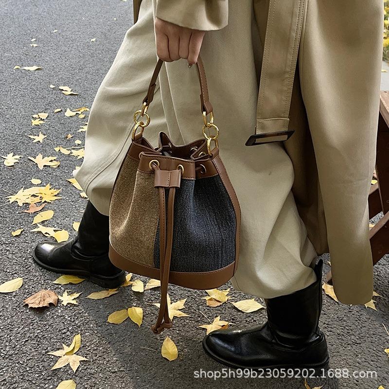 Beliebte kontrastfarbene kleine Taschen, neue Damen-Umhängetaschen für Herbst und Winter, modische tragbare Bucket Bags