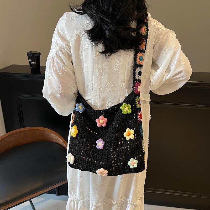 Gestrickte Umhängetasche kleine Blumen-Umhängetasche Mädchen kleiner frischer Rucksack Strandtasche für den Strand