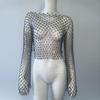 Europäisches & Amerikanisches High-End Mesh Strass Damen Langarmtop