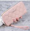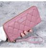 Damen Langreißverschluss-Geldbörse: Bestickte Clutch in Unifarbe, Geräumiges Münzfach, Multifunktionale Handytasche