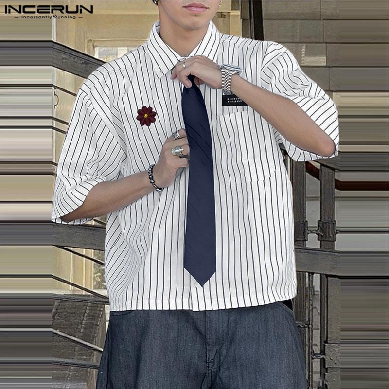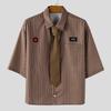 INCERUN Men Summer Tie Up Half Sleeve Striped Loose Casual Shirts Tops