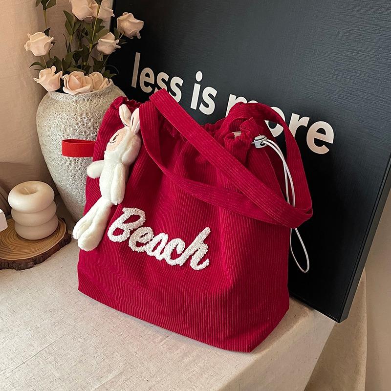 Neue Herbst- und Winter-Cord-Schultertasche mit großem Fassungsvermögen aus reiner Baumwolle, vielseitige Studenten-Einkaufstasche mit Buchstabenstickerei