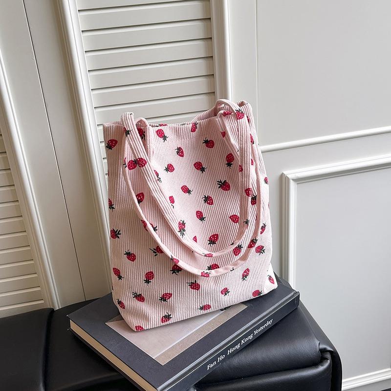 Tasche Damen neu lässig große Kapazität schön einfach Mode College-Stil Umhängetasche Kirsche Erdbeere Cordtasche