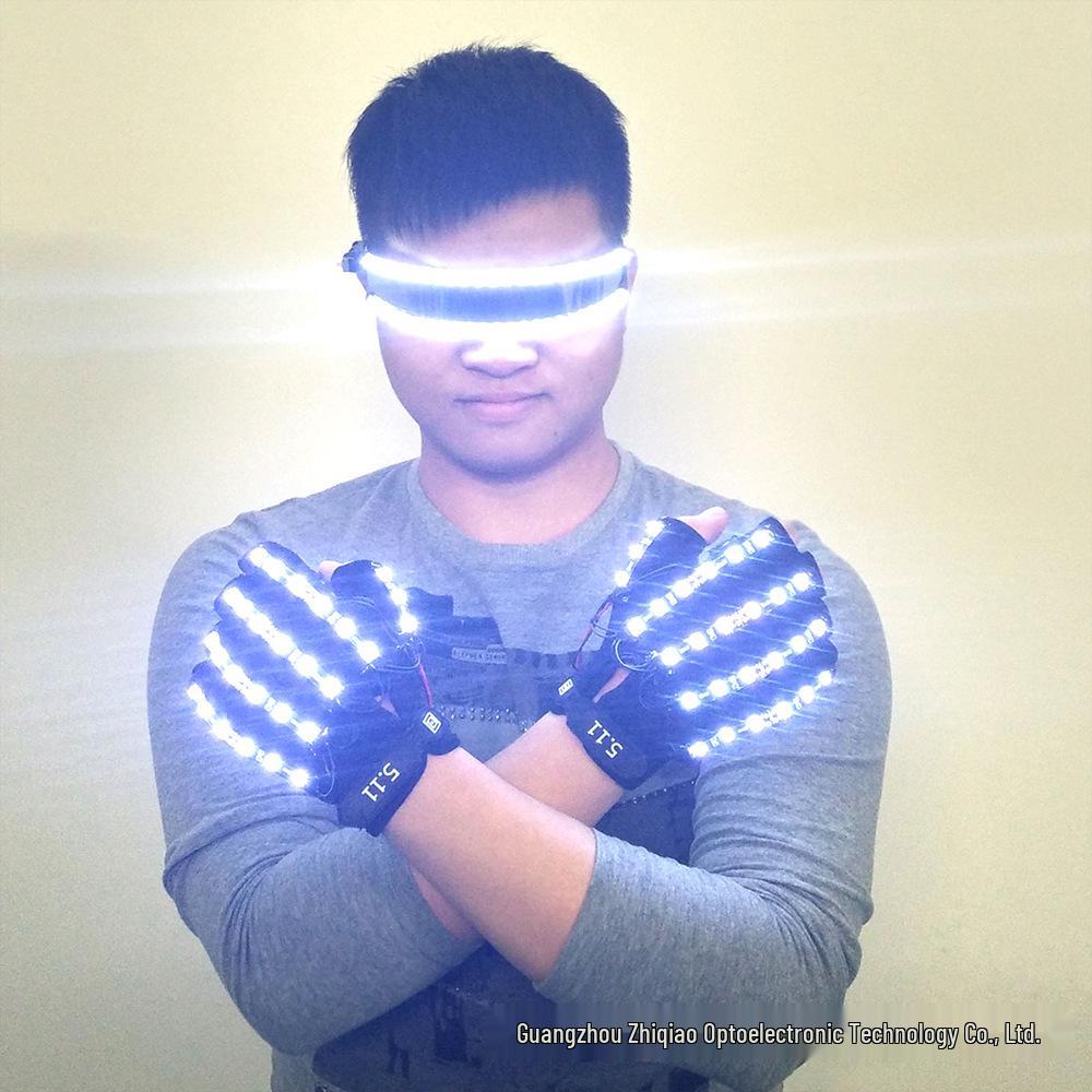 LED Wolverine Handschuhe & Dreifarbige Leuchtbogen-Brille für Bühnen- und Barauftritte