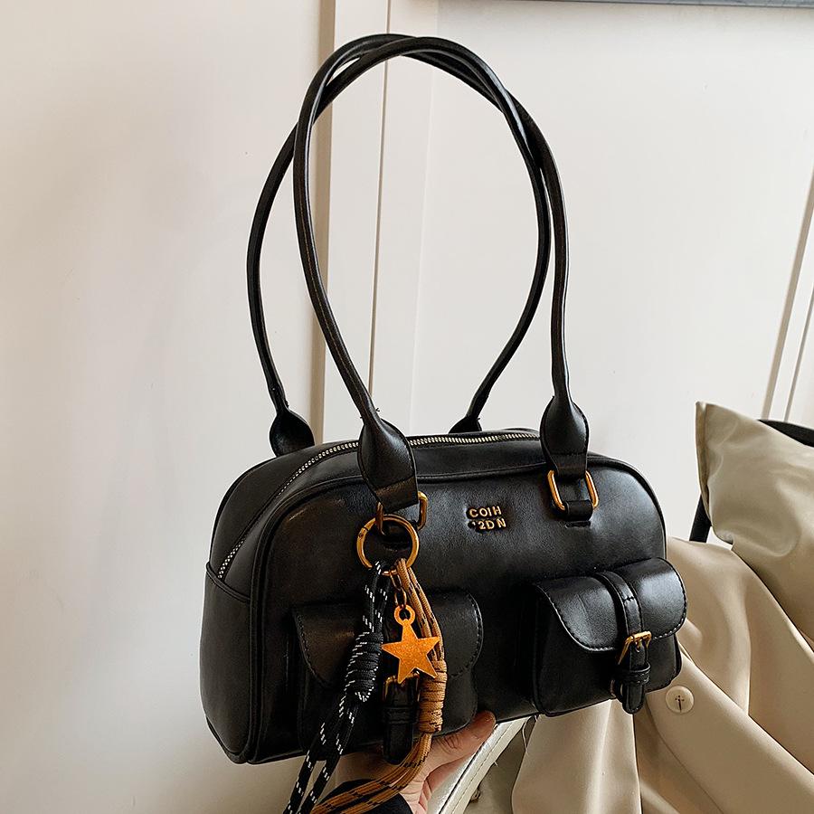 - **Details zur strukturierten Mehrwegtasche**: Verfügt über eine stilvolle, strukturierte Bowlingtaschen-Silhouette mit PU-Material, mehreren funktionellen Taschen und einem dekorativen Anhänger (Erhältlich mit oder ohne Anhänger), plus einseitige Trageoption, die Retro- und praktischen Charme versprüht. Mehrere Farb- und Anhängervarianten (Schwarz, Rot, Braun, Kaffee, mit/ohne Anhänger) Wir berücksichtigen unterschiedliche Stilvorlieben.