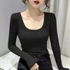 Basisschicht Damen Herbst Winter Langarm Unterwäsche Strukturierte Schulter T-Shirt Slim Fit Gerippt Vielseitig Kann Oberbekleidung Top sein