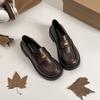 Britischer Stil Retro braune Plateau kleine Lederschuhe Damen 2025 neu Frühling und Herbst vielseitige Ein-Pedal französische Loafer