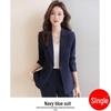Dieses elegante Blazer-Anzug-Set wurde speziell für professionelle Frauen entworfen, die stilvolle und anspruchsvolle Arbeitskleidung suchen.. Perfekt für die Frühlings- und Herbstsaison, dieses Set besteht aus einem eleganten blauen Blazer aus strapazierfähigem Polyestermaterial.. Das Futter aus TR-Gewebe sorgt für eine zusätzliche Schicht Komfort und leichte Wärme und macht es ideal für Übergangszeiten.. Ob für Vorstellungsgespräche oder den Büroalltag, dieses Anzugset strahlt Selbstbewusstsein und Professionalität aus.
