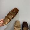 Retro flache Sohle eckige Spitze einzelne Schuhe Ballerinas Herbst neu Französisch braun Schleifenschnalle Mary Jane Damenschuhe