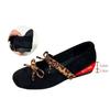 Schaffell-Version! Retro Einzelne Schuhe Damen Wildleder Runde Zehenpartie Leichter Ausschnitt Leopardenmuster Schleife Innenliegende Erhöhung Mary Jane Ballerinas