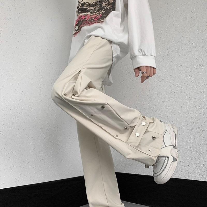 Geknöpfte Hose mit weitem Bein Herren Sommer-Vibe High Street Wischhose Lässige Hose Trendmarke Raufbold Gutaussehende Hose