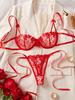 Elegantes Dessous-Set mit floraler Stickerei, Bügel-BH und String mit Schleife