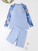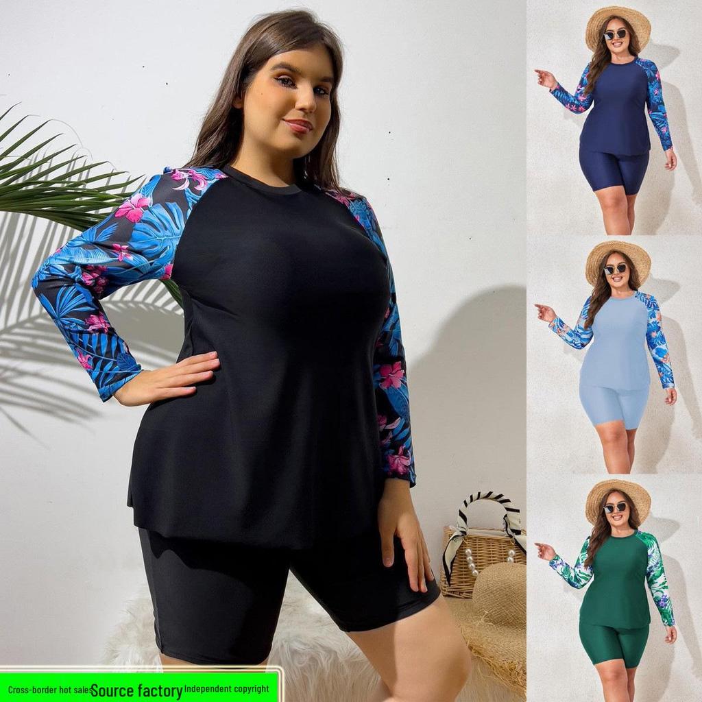 Tauchen Sie ein in Komfort und Stil mit diesem Damen Übergröße Langarm zweiteiligen Tankini Badeanzug. Entworfen für die moderne Frau, verfügt es über ein schmeichelhaftes Langarmdesign, das sowohl Sonnenschutz als auch eine schicke Ästhetik bietet.. Aus strapazierfähigem Polyester gefertigt, verspricht es eine bequeme Passform, die ihre Form behält, Schwimmen für Schwimmen.. Der Tankini ist perfekt für jedes Strand- oder Poolziel und bietet sowohl Funktionalität als auch einen modischen Look zum Schwimmen oder Entspannen am Wasser.