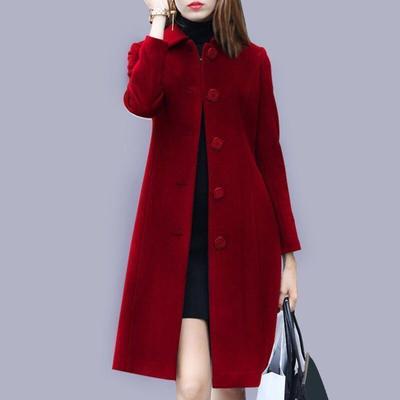 Große Größe Damen Herbst Vintage Mittellange Einreihige Wollmäntel Langer lockerer Mantel