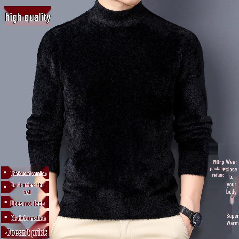 Dieser exquisite Herrenpullover verfügt über ein anspruchsvolles Stehkragen-Design mit einem maßgeschneiderten Ausschnitt, perfekt, um Ihrer Wintergarderobe einen Hauch von Eleganz zu verleihen.. Gefertigt aus luxuriösem Nerzfell, bietet es eine schlanke Passform, die sich elegant an den Körper schmiegt und gleichzeitig Wärme und Komfort gewährleistet.. Die langen Ärmel tragen zu seinem klassischen Reiz bei und machen ihn zu einer schicken und modischen Wahl für kaltes Wetter.. Genießen Sie die dicke, weiche Textur dieses Strickpullovers, ideal für diejenigen, die Stil und Qualität in ihrer Winterkleidung schätzen.