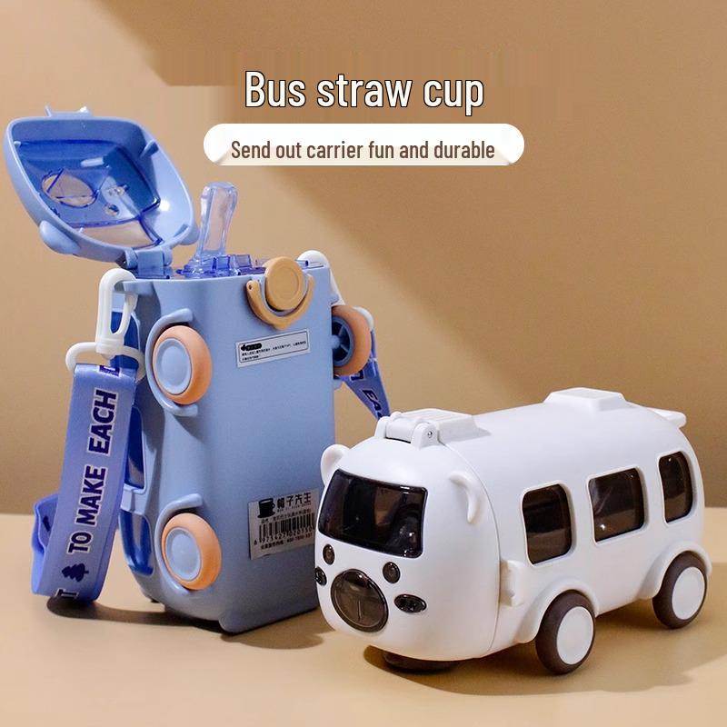 Sommer-Trinkflasche für Kinder mit Auto-Motiv, Strohhalm und Schultergurt