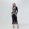 Spring and Autumn Halloween Skirt Long Sleeve Dress Digital Printing Skeleton Sexy Long Dress