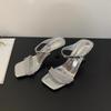 Französisches Temperament quadratischer Kopf Strass dünner Riemen hochhackige Sandalen Damen Sommerkleidung mit Röcken, schöner Schnitt Herren dünne Absätze hohe Absätze