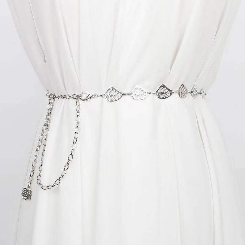 Retro Metal Leaf Waist Chain Women's Dress Is Fashionable and Versatile. The Chain-decorated Belt Goes Well with The Skirt and Shirt