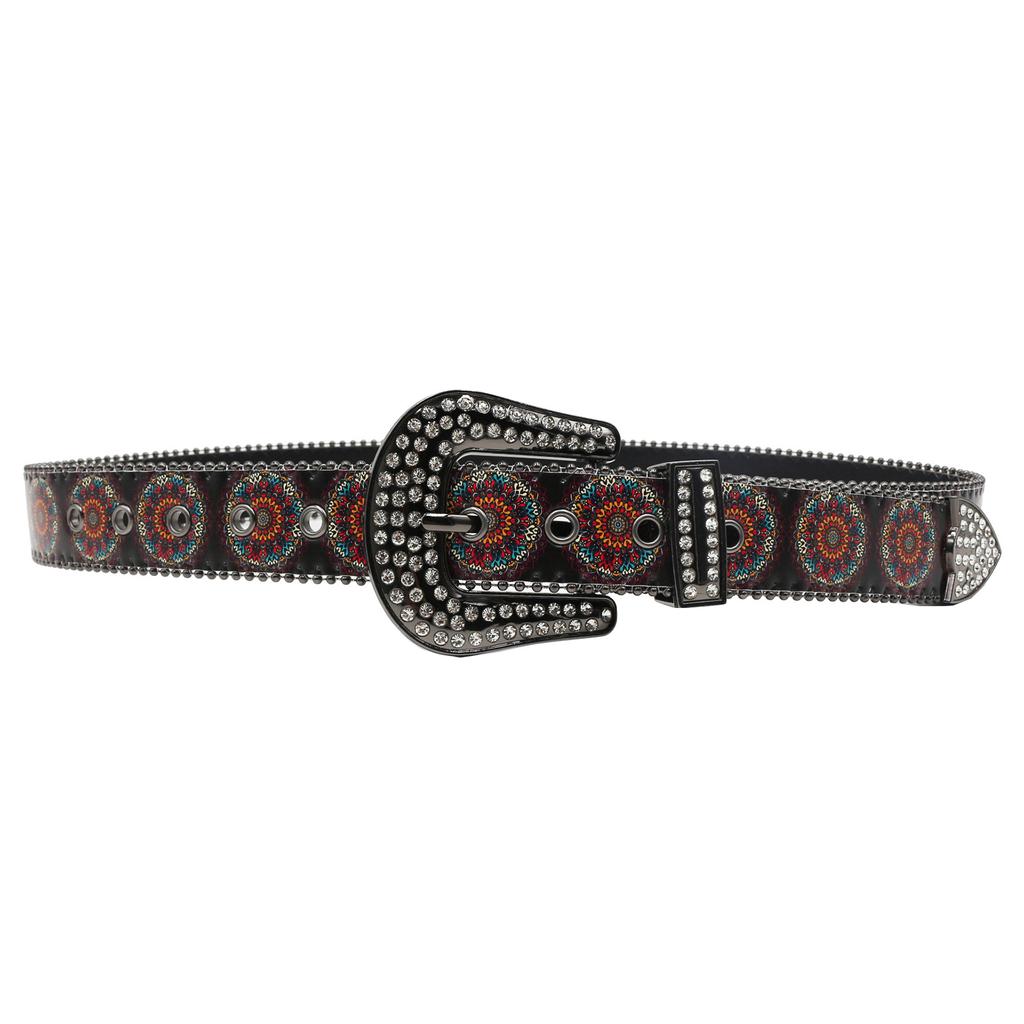 Rhinestone Belt Print Ladies High-end Pattern Women's Belt Retro Literary and Ethnic Style Mandala Pattern Belt