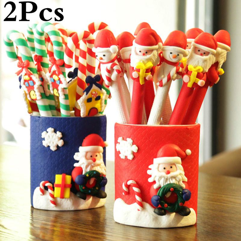 2Pcs Christmas Decoration for Home Crutches Ballpoint Pen with Xmas Santa Claus Snowman Toys