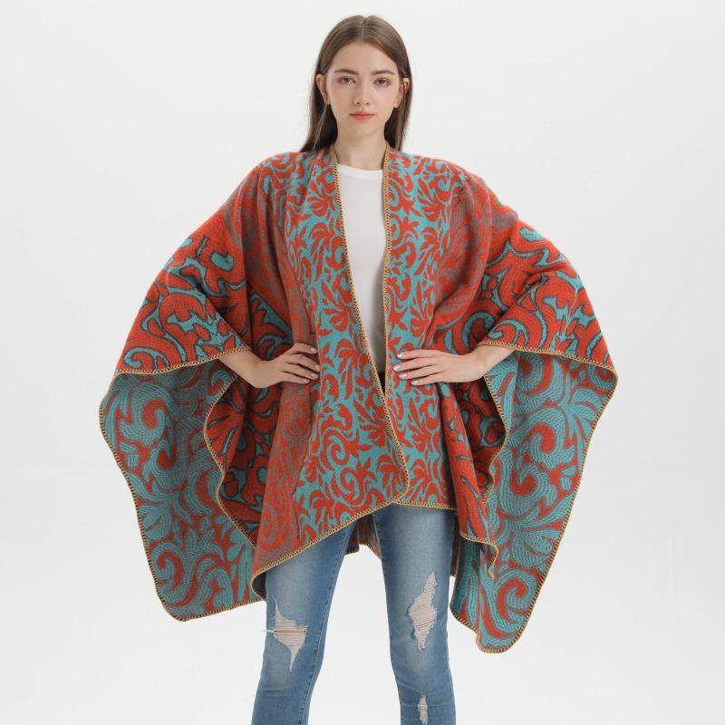 Neuer Damen-Schal-Umhang Retro Flamme Glückswolke Jacquard Warmer geteilter Schal