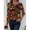 Mode Damen T-Shirt Tee Ombre-Druck Halloween Lässig Urlaub Mode Langarm T-Shirt O-Ausschnitt Gelbes Sweatshirt Pullover