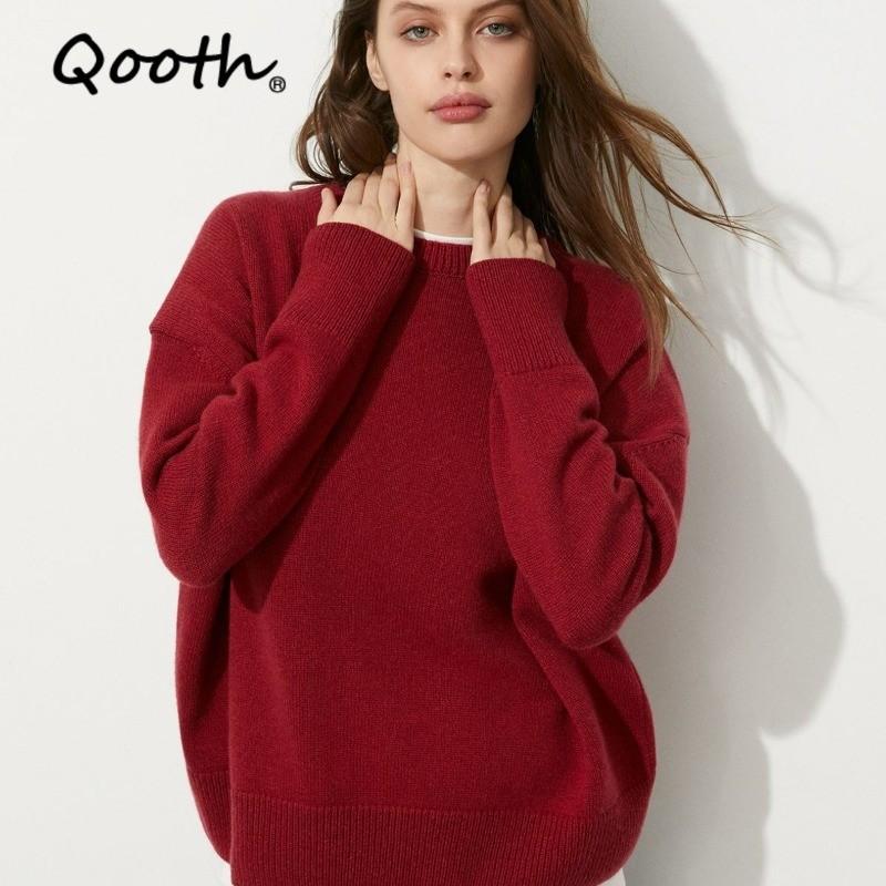 Qooth Thick Solid-Color Crew Neck Pullover Oversize Sweater for Winter QT2777