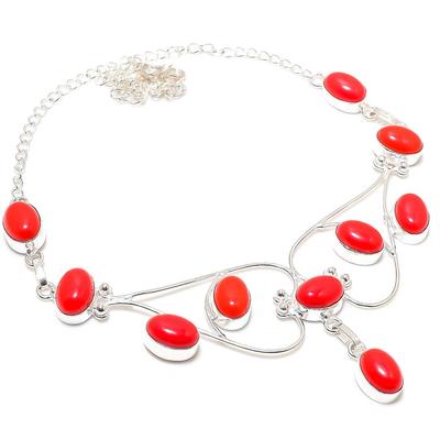 Red Coral, Garnet Gemstone 925 Sterling Silver Jewelry Necklace 18"